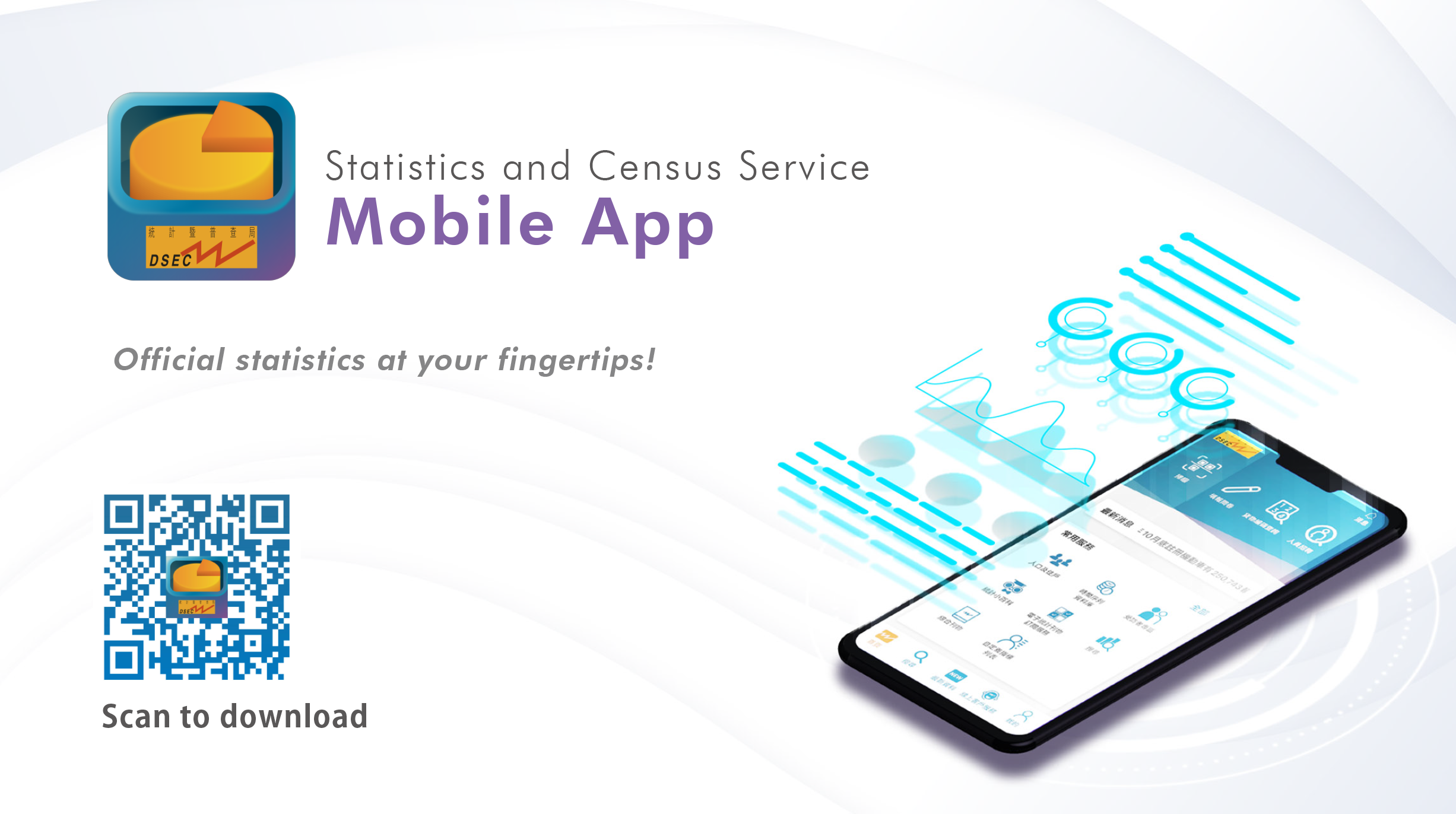 為方便公眾隨時隨地獲取澳門官方統計資料,統計暨普查局推出了全新版的手機應用程式,新增服務功能提升使用者查找統計數據的體驗和便利性。