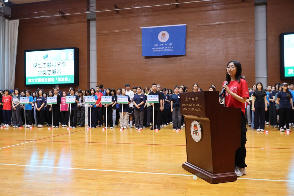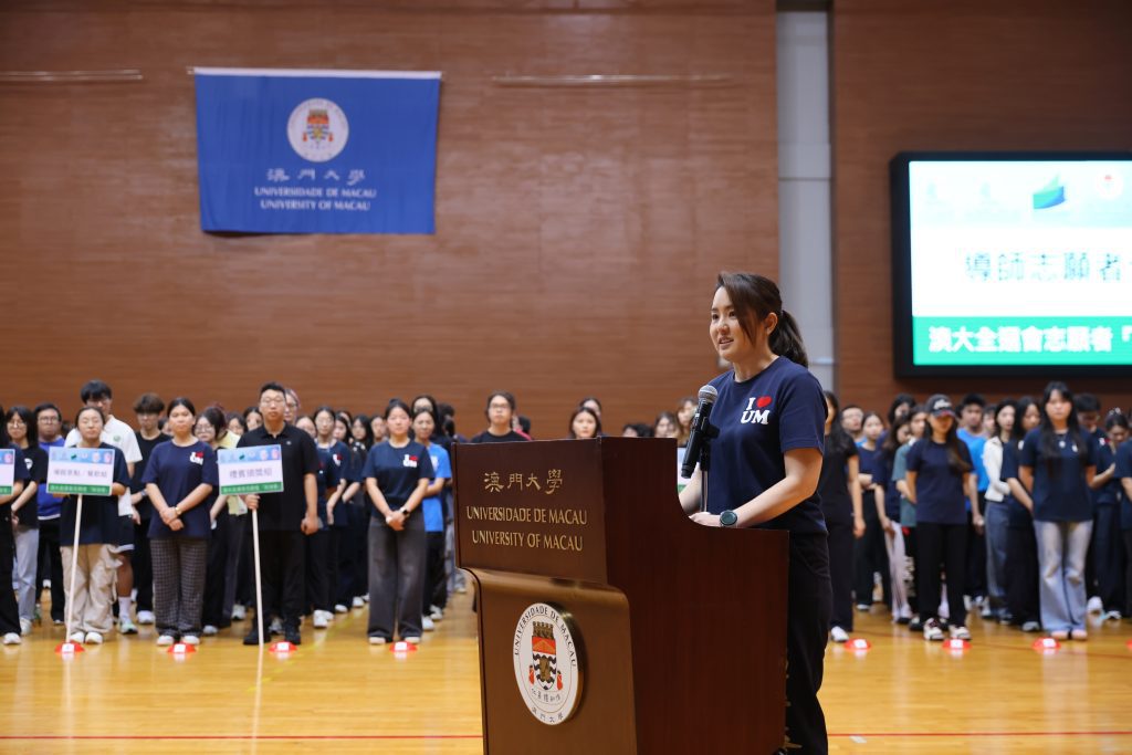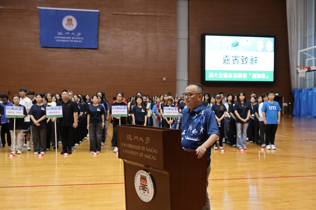 UM Rector Yonghua Song delivered a speech highlighting the significance of the Games. He commended UM volunteers for their outstanding performance in previous services and encouraged UM volunteers to serve with professionalism, enthusiasm, and a sense of responsibility in their volunteering services at the Games. Demonstrating the spirit of UM and contributing meaningfully to the success of the Games.