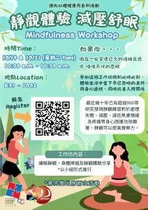 【小組活動報名】澳大心理健康月系列活動 - 靜觀體驗,減壓舒眠 (2025/10/14 & 21, 週二)