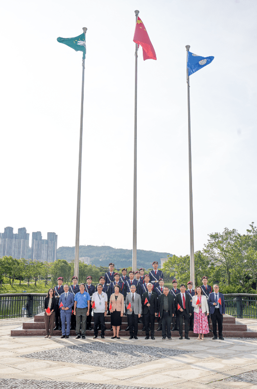 校方領導與澳大國旗儀仗隊於升旗儀式後大合照