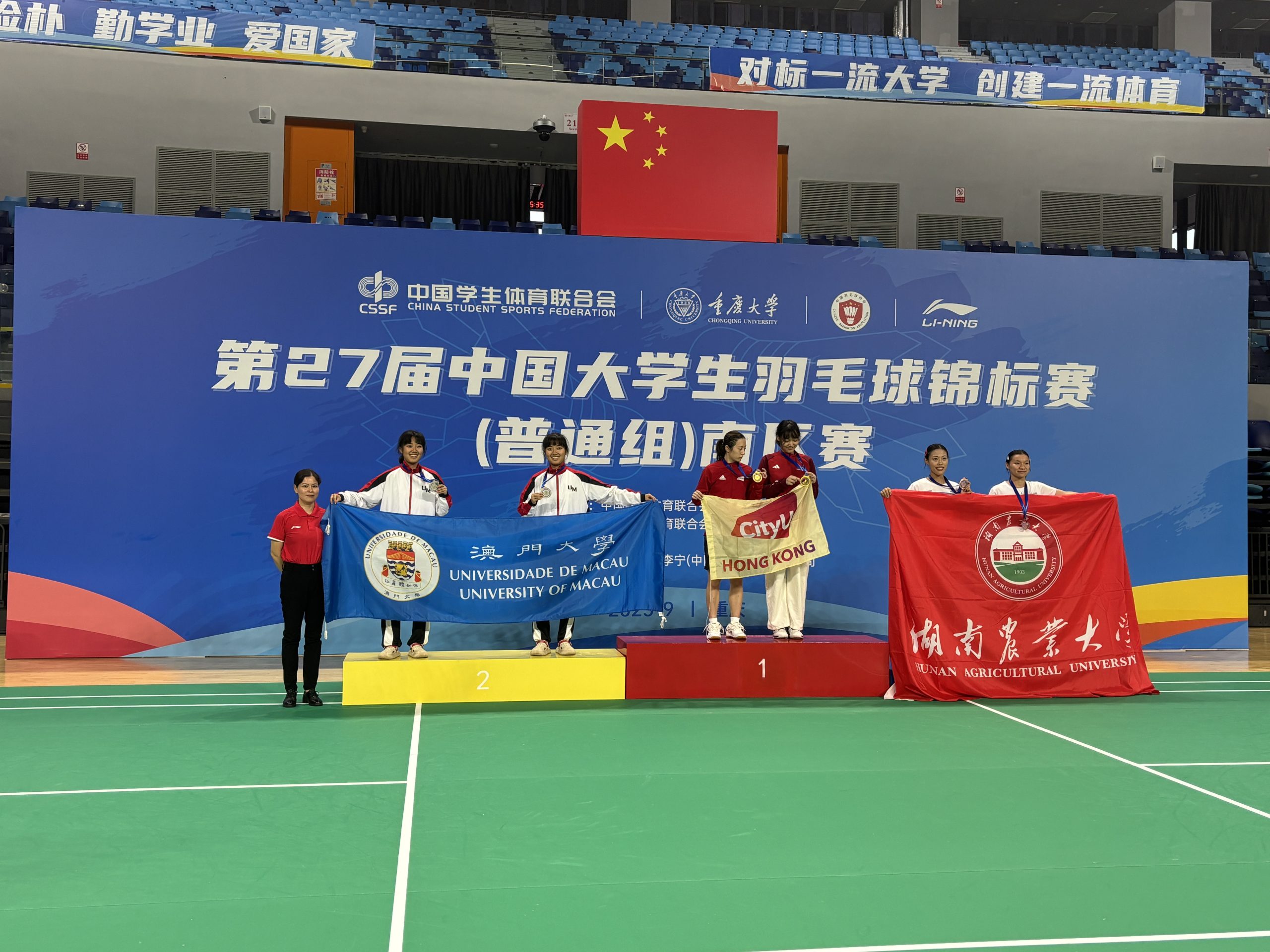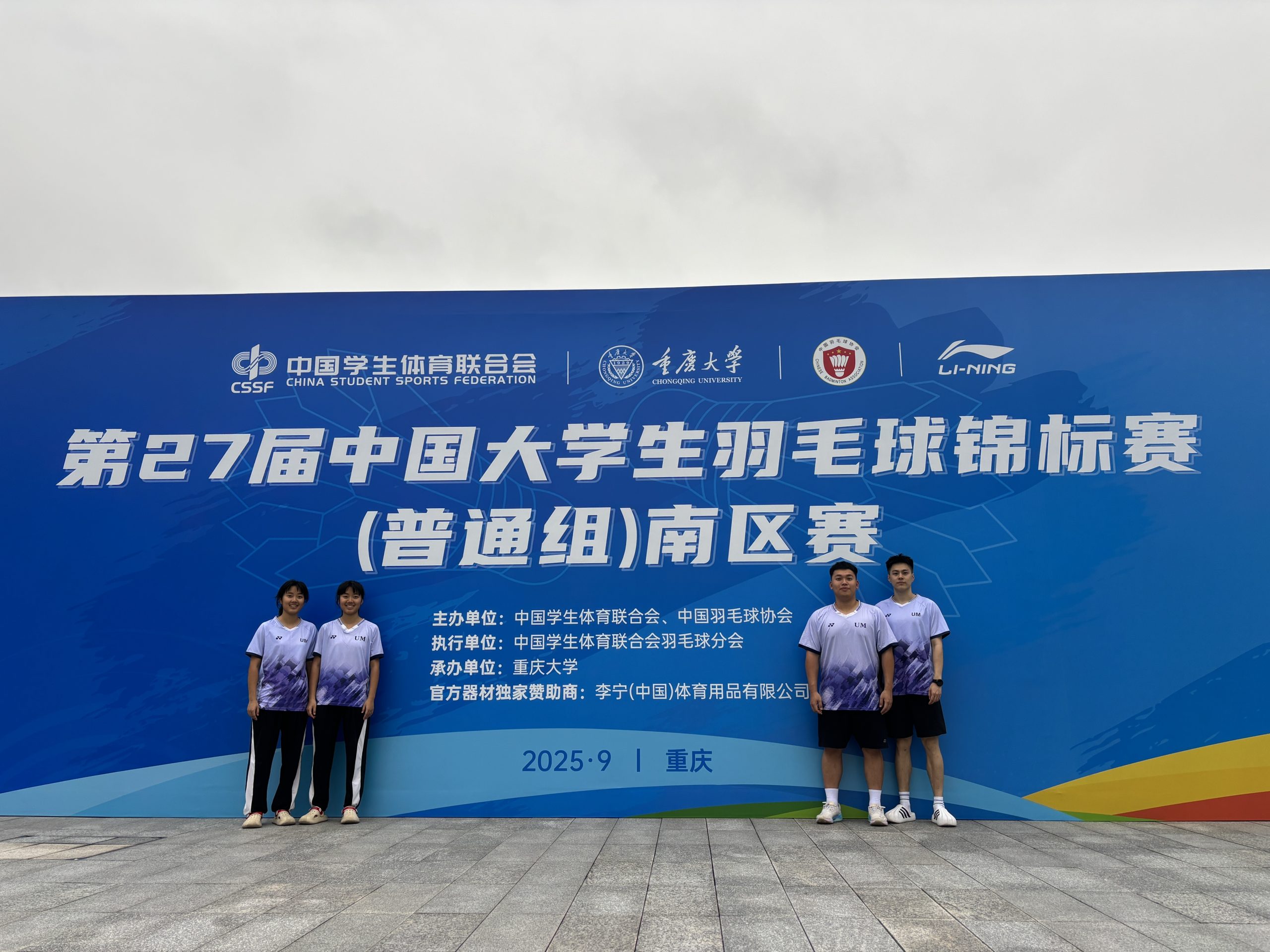 The “27th China University Badminton Championship (General Group) Southern Division” (hosted by 中國學生體育聯合會及中國羽毛球協會) ended successfully on 27 Sep in Chongqing University in Chongqing. There were 44 Universities participating in the championships, they sent their athletes to participate, with a total of 305 participants.