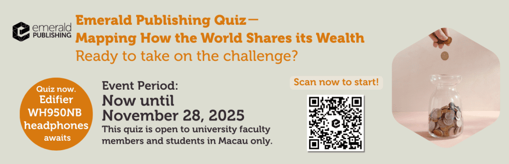 Emerald 是一家著名學術出版機構。澳門大學圖書館訂購了 Emerald Insight 資料庫,該庫收錄來自 300 多種管理類期刊的超過 40,000 篇文章,提供自 1994 年起的全文檔案以及自 1989 年起的摘要。其內容涵蓋廣泛的學科領域,包括策略、領導力、行銷、人力資源管理,以及工程、應用科學和技術等。