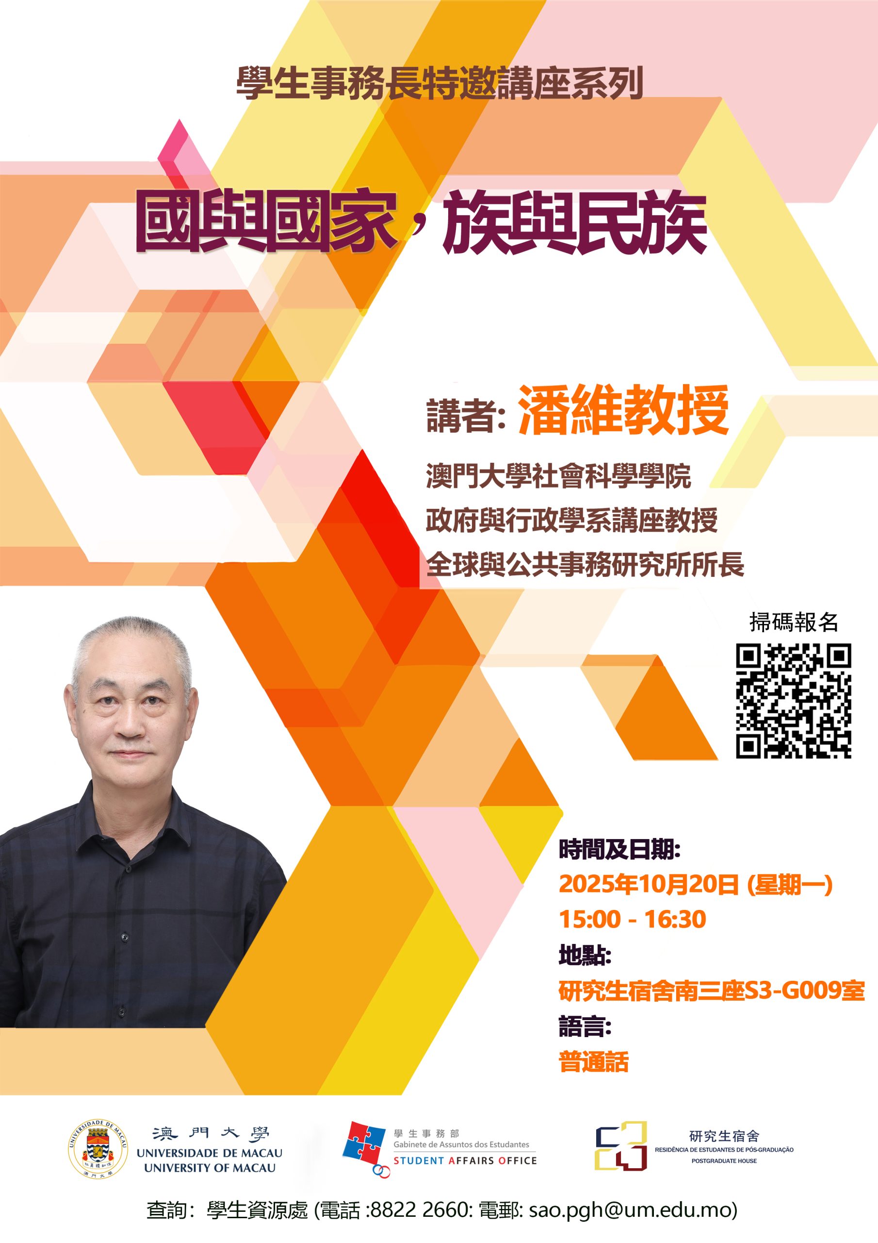 學生事務長特邀講座系列: "國與國家,族與民族" — 社會科學學院講座教授潘維 (10月20日下午3:00,S3-G009)