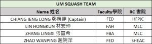 A total of 4 members from the UM Squash Team were selected to represent the university in this competition. UM Squash Team has captured the Championship of the Women’s Singles Open Division and 2nd Runner-up of Men’s Singles Open Division, the following table shows the UM Squash Team medalist for the Tournament: