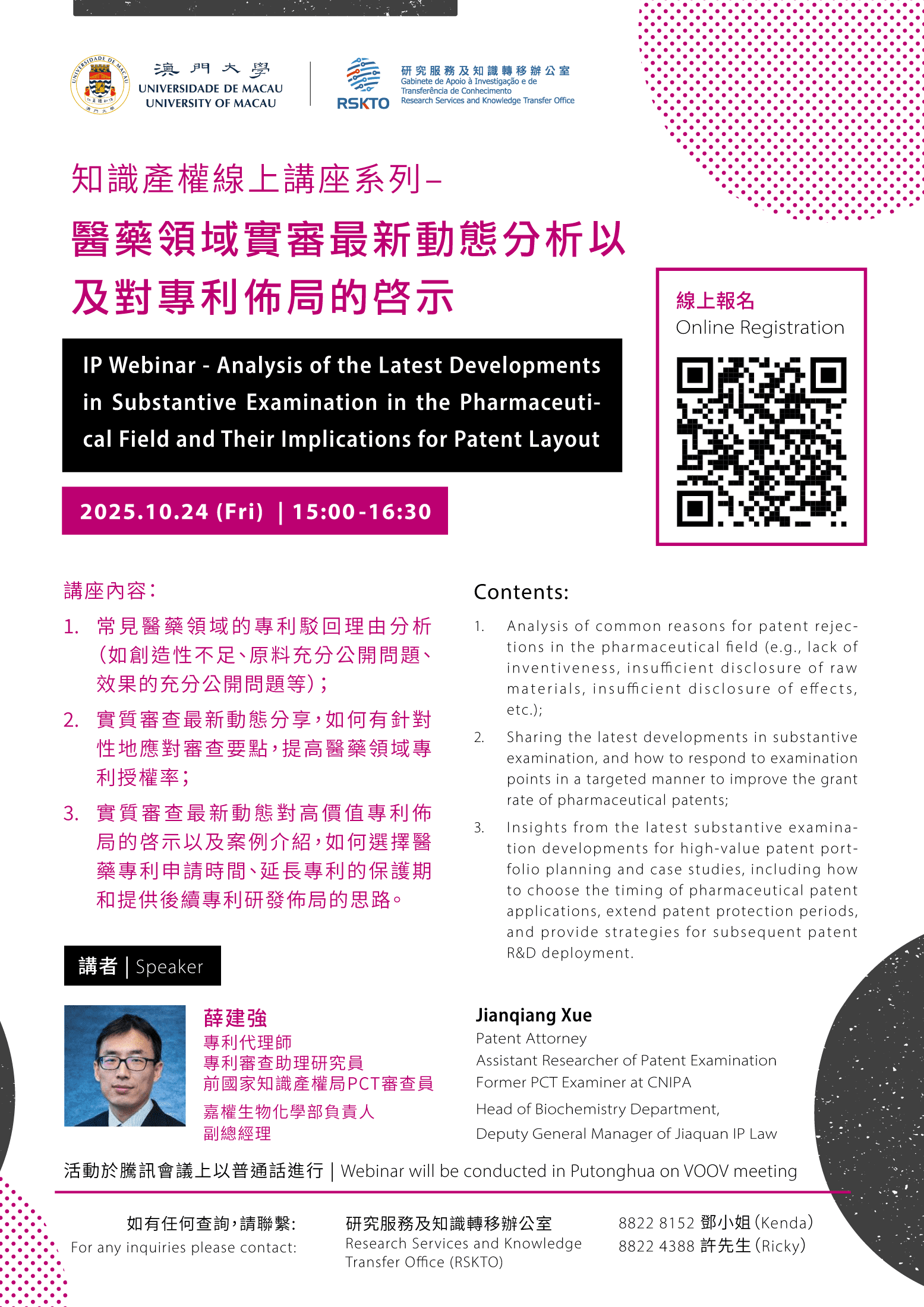 IP Webinar Series: 1. From Hardware to Software: Methods and Practices of Multidimensional Patent Mining and Portfolio Development; 2. Analysis of the Latest Developments in Substantive Examination in the Pharmaceutical Field and Their Implications for Patent Layout