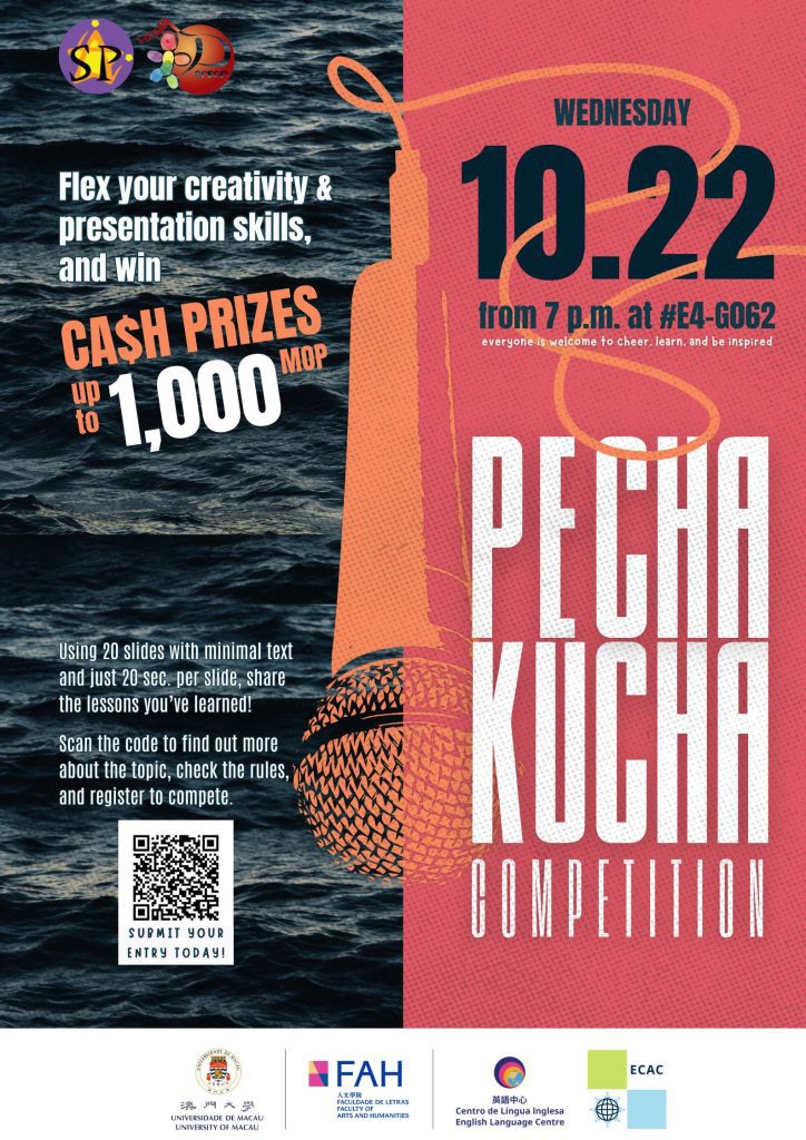 【英語中心 -ECAC】 “Pecha Kucha 英語演講大賽” , 10月22日(三), 19:00 ; 〈 截止報名日期 10月13日 〉