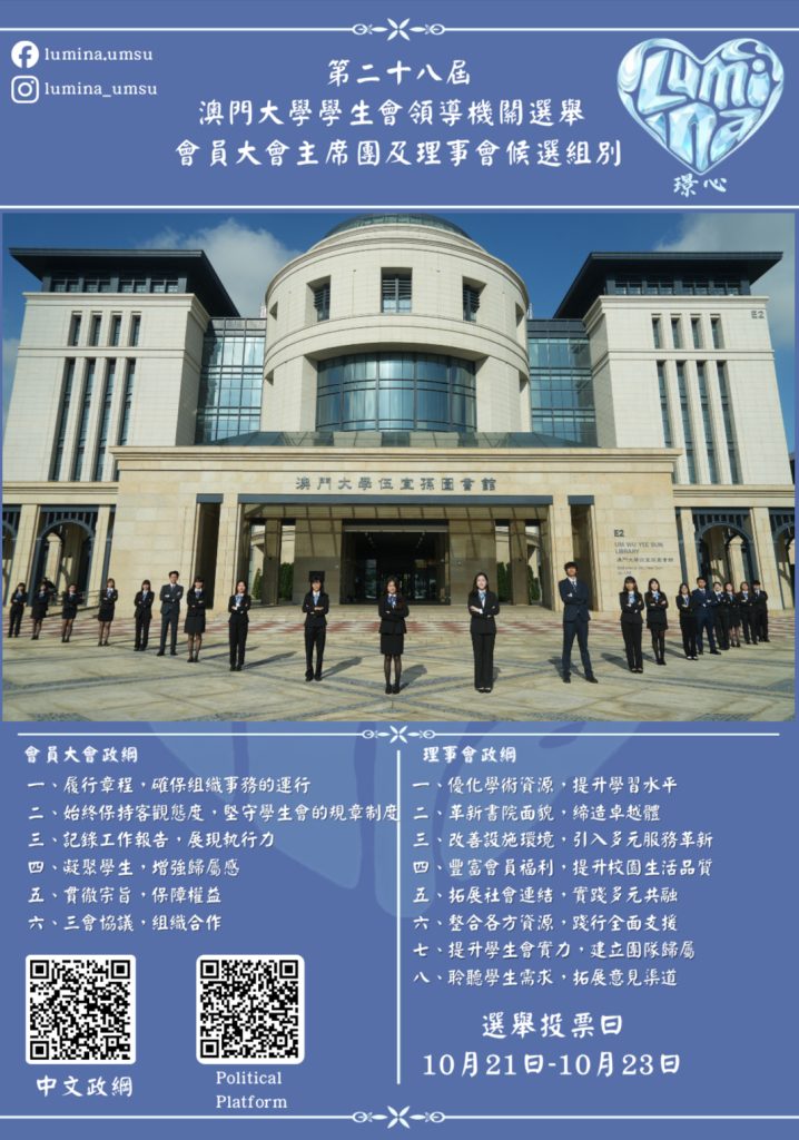 本通告由 澳門大學學生會選舉委員會 製作,學生發展處代傳。