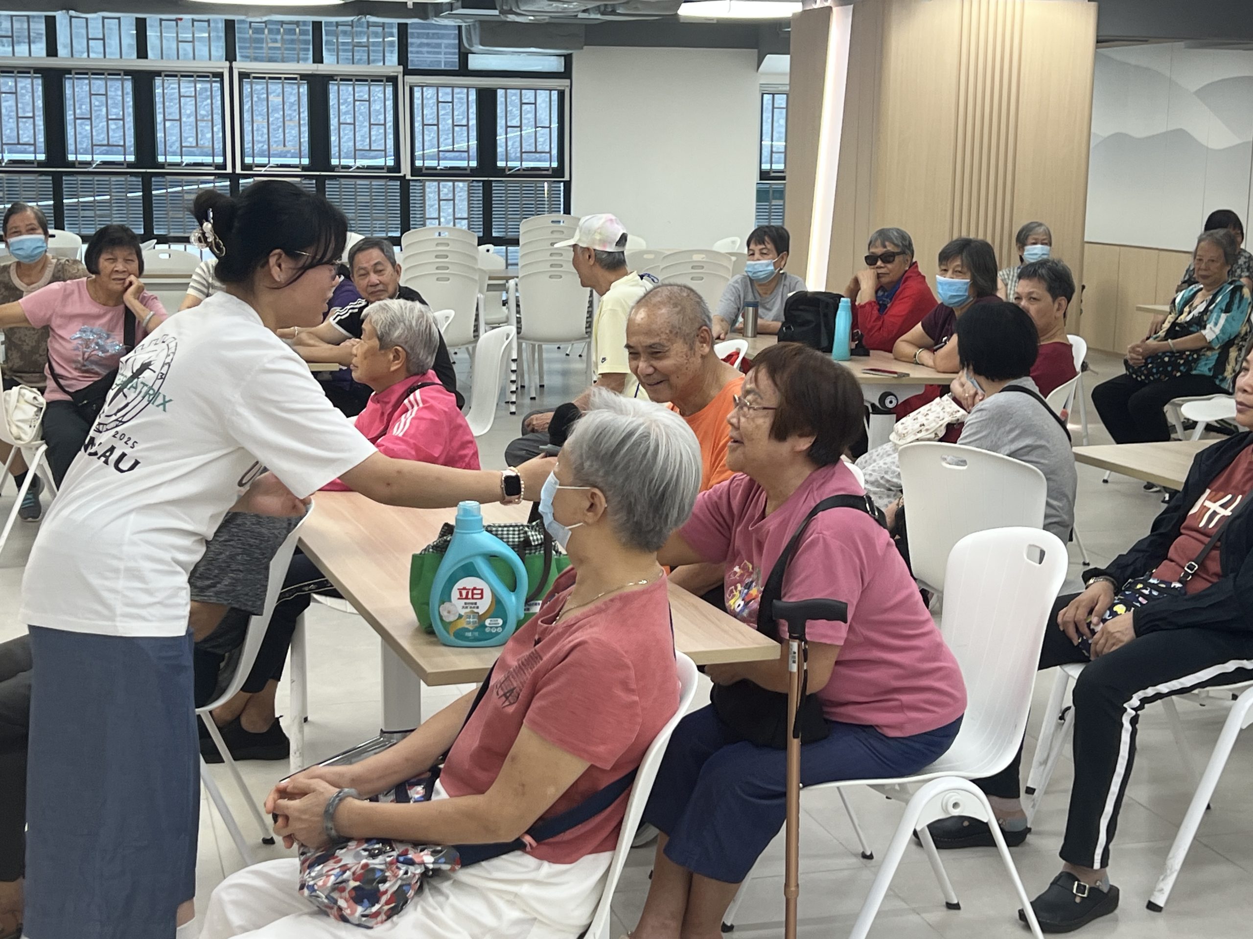 The event began with a talk by student Van Hio Ieng, who introduced practical tips on termite prevention in the home. She reminded participants to keep indoor environments dry, inspect wooden furniture regularly, and adopt simple, low-toxicity methods to safeguard against termite damage. Her session enhanced the seniors’ awareness of home safety and practical pest control. Next, volunteers guided the elderly in creating natural mosquito-repellent sachets, using herbs such as mugwort and peppermint. The herbal sachets were not only environmentally friendly but also easy to make, earning positive feedback from the participants. The activity concluded with a lively game session led by student Cheng Cheng, featuring memory-matching and coordination games designed to engage the mind and body. The room was filled with laughter as the seniors enthusiastically joined in.