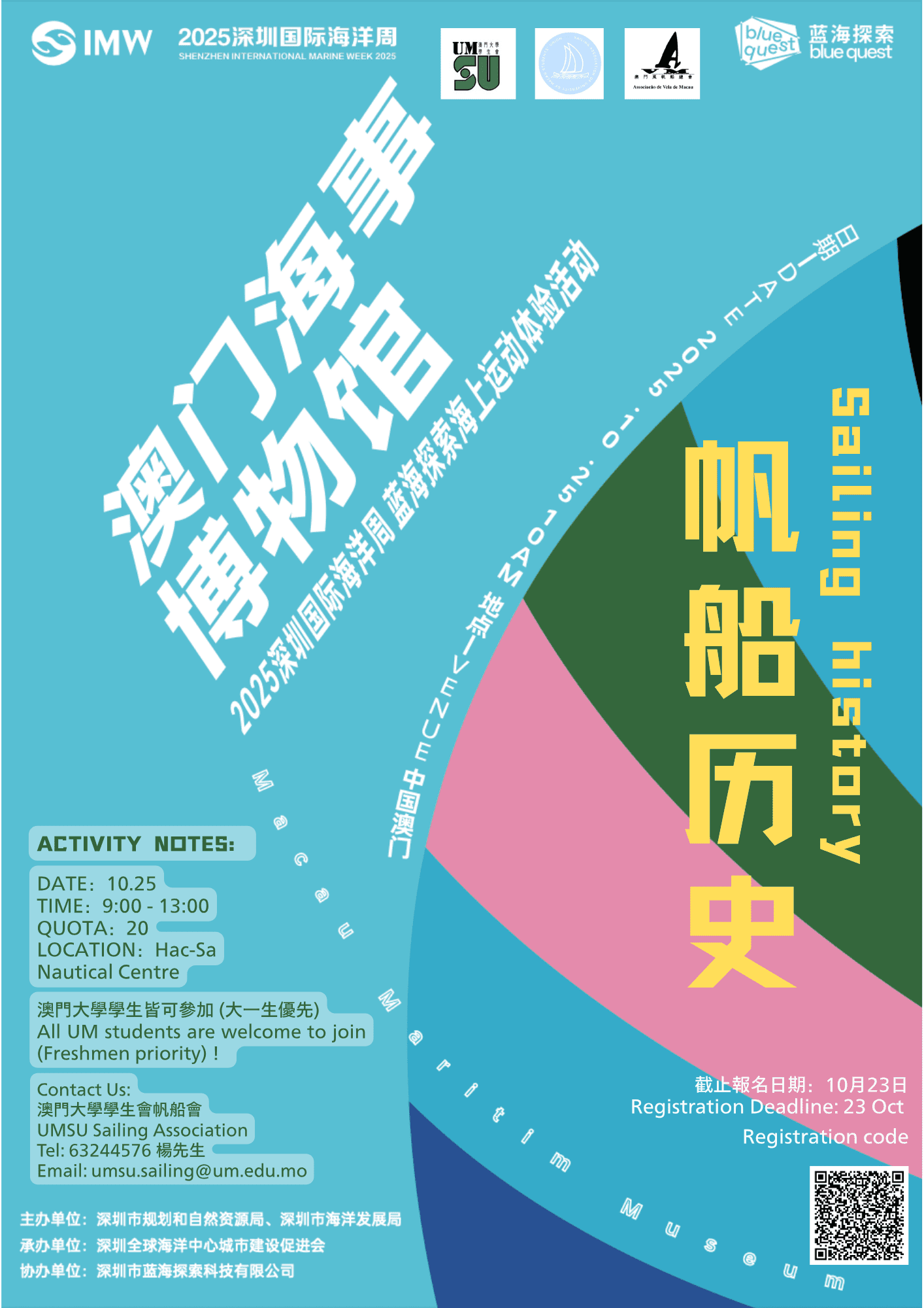 澳門大學學生會帆船會將於2025年10月25日(星期六)舉辦參觀澳門海事博物館活動,現正開放報名!