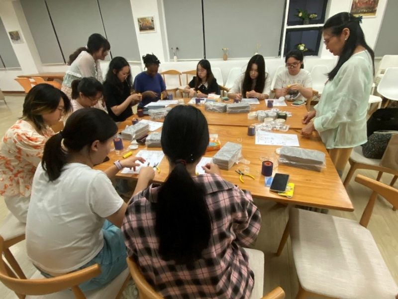 The event was coordinated by Rachel Zhan, Resident Assistant of MCMC, along with Ms. Fanny Law and Mr. Norman Lo, UM library staff, who guided participants through the process of creating hairpins. After observing an instructional demonstration, students utilized a variety of materials provided to handcraft their own hairpins. Throughout the session, participants actively engaged their creativity, blending personal aesthetic preferences and individual styles with the guidance they received. The workshop concluded successfully, with students producing a diverse and vibrant array of unique hairpin designs.