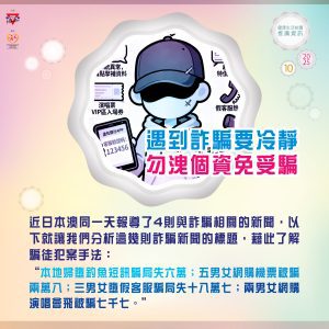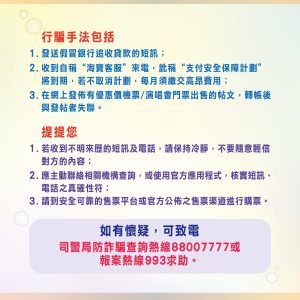 - 若收到不明來歷的短訊及電話,請保持冷靜,不要隨意輕信對方的內容;
