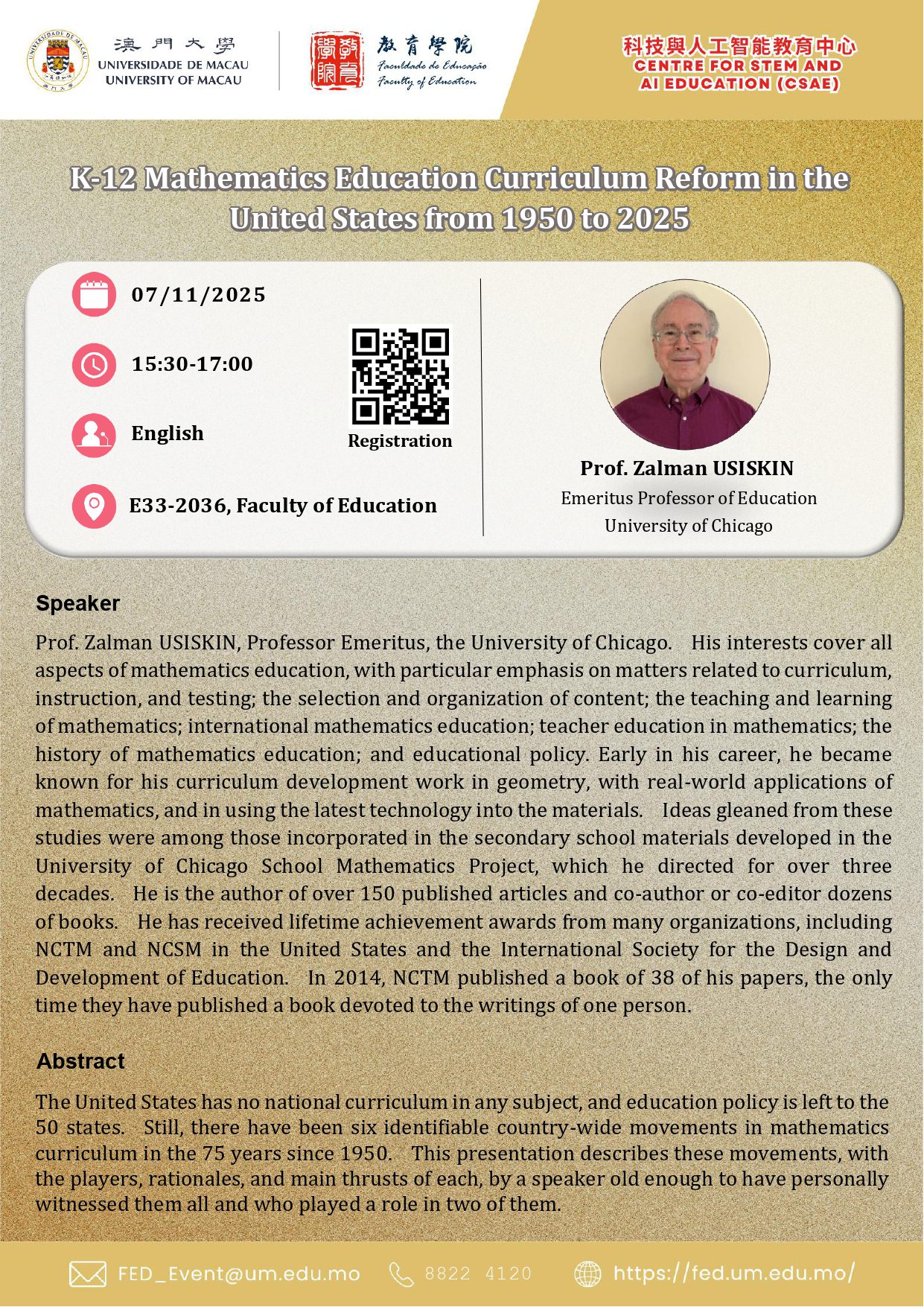 | Speaker 講者: | Prof. Zalman USISKIN |