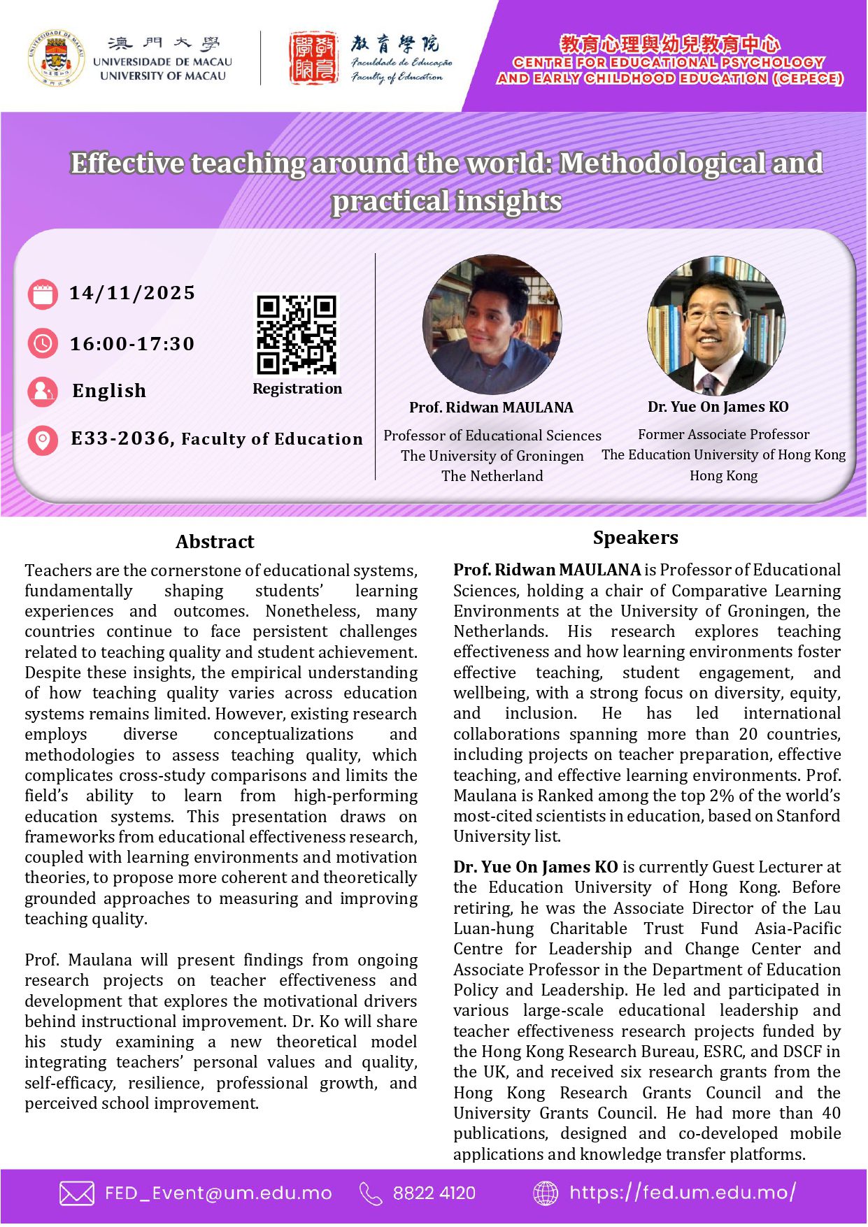 教育學院—教育心理與幼兒教育中心講座:"全球有效教學研究的方法和實踐"