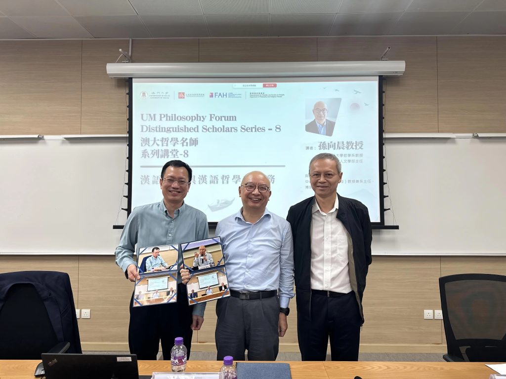 UM Philosophy Forum Distinguished Scholars Series – 8, jointly organised by the Institute of Advanced Studies in Humanities and Social Sciences (IAS) and the Department of Philosophy and Religious Studies of the Faculty of Arts and Humanities (FAH) at the University of Macau, was successfully held on the afternoon of 24 October 2025 at the Faculty of Arts and Humanities Building (E21A-G049). The lecture featured Professor Xiangchen Sun, Professor of Philosophy and Dean of the Division of Humanities at Fudan University, as the keynote speaker. The session was moderated by Professor Di Wang, Associate Director of IAS and Chair Professor of the Department of History at UM, with Professor Jianhong Chen, Chair of the Department of Philosophy (Zhuhai) and Dean of the School of Liberal Arts at Sun Yat-sen University, serving as discussant.