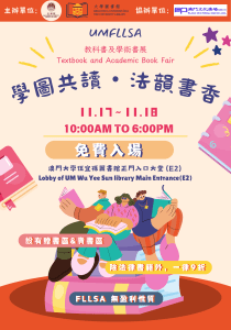澳門大學學生會法學院學生會:「學圖共讀·法韻書香」書展 (11月17-18日, 10:00-18:00, E2)