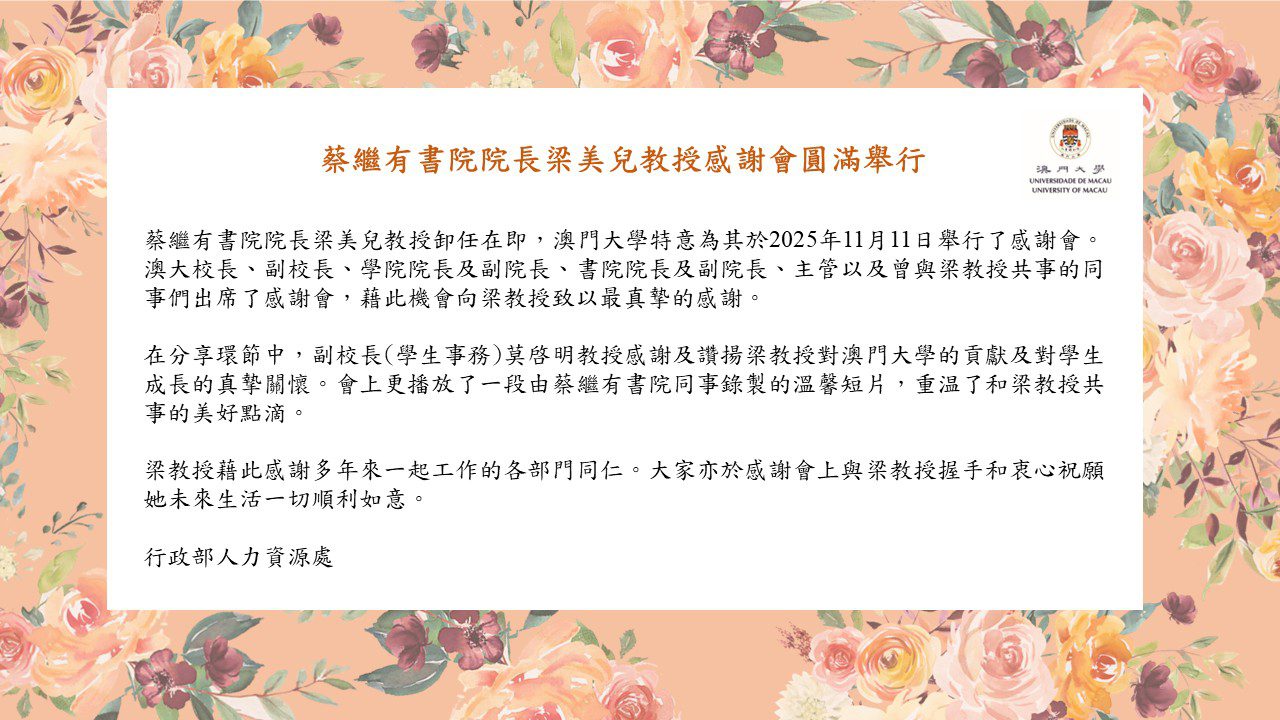 蔡繼有書院院長梁美兒教授感謝會圓滿舉行