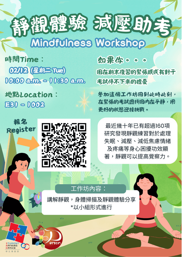 【活動報名】心理健康工作坊 - 靜觀體驗,減壓助考