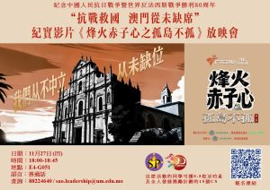 紀念中國人民抗日戰爭暨世界反法西斯戰爭勝利80周年《烽火赤子心之孤島不孤》放映會 (11月27日, 18:00, E4-G051)