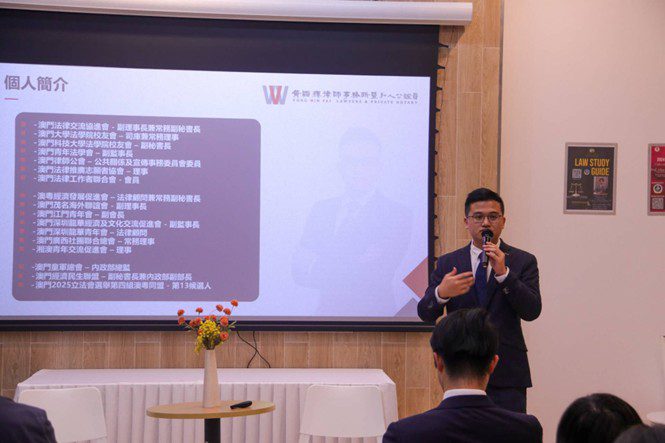 2025年11月20日,澳門大學滿珍紀念書院與民眾法律促進會聯合舉辦「用法律照亮社會」分享會。活動邀請澳門法律交流協進會會長、大律師黃景禧及副理事長、大律師林華傑擔任主講嘉賓,深入探討如何將法律專業與社會服務相結合,並分享他們的實踐經驗與心得。