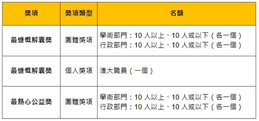 參與者可競逐以下多個獎項: