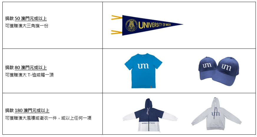 捐款可獲贈以下紀念品:
