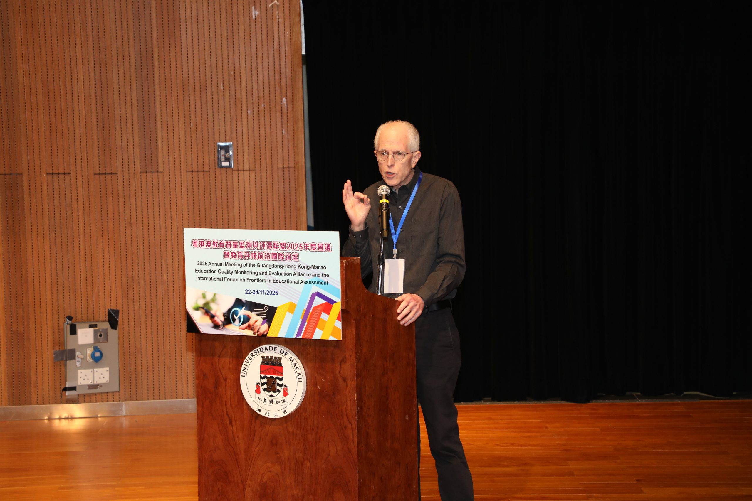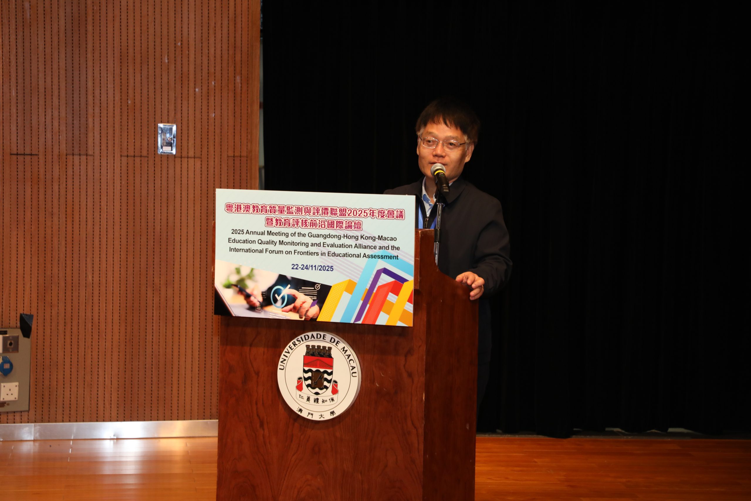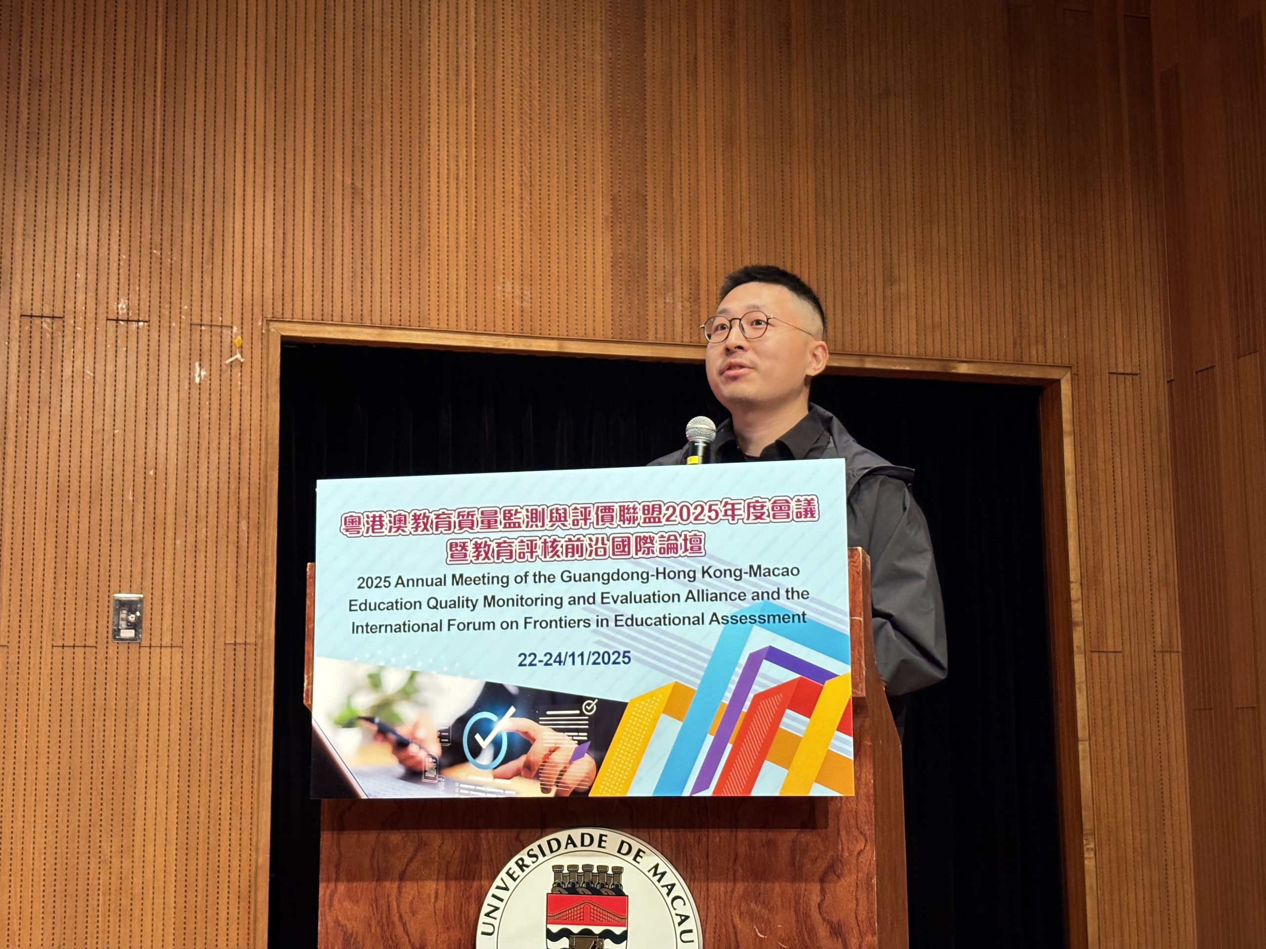 In response to national strategic initiatives such as “Building China into an Education Power” and the development of the Guangdong-Hong Kong-Macao Greater Bay Area, the “2025 Annual Meeting of the Guangdong-Hong-Kong-Macao Education Quality Monitoring and Evaluation Alliance and the International Forum on Frontiers in Educational Assessment” hosted by the Faculty of Education of the University of Macau and co-organized by the Collaborative Innovation Center of Assessment toward Basic Education Quality at Beijing Normal University and the Faculty of Education of The Chinese University of Hong Kong, was successfully held at the Faculty of Education of the University of Macau from 22 to 24 November 2025. This year’s forum focused on emerging theories and methods in educational assessment, technological applications in educational assessment, design and implementation of large-scale assessments, assessments of emerging competencies, and policies related to educational quality monitoring and evaluation, attracting scholars from overseas.