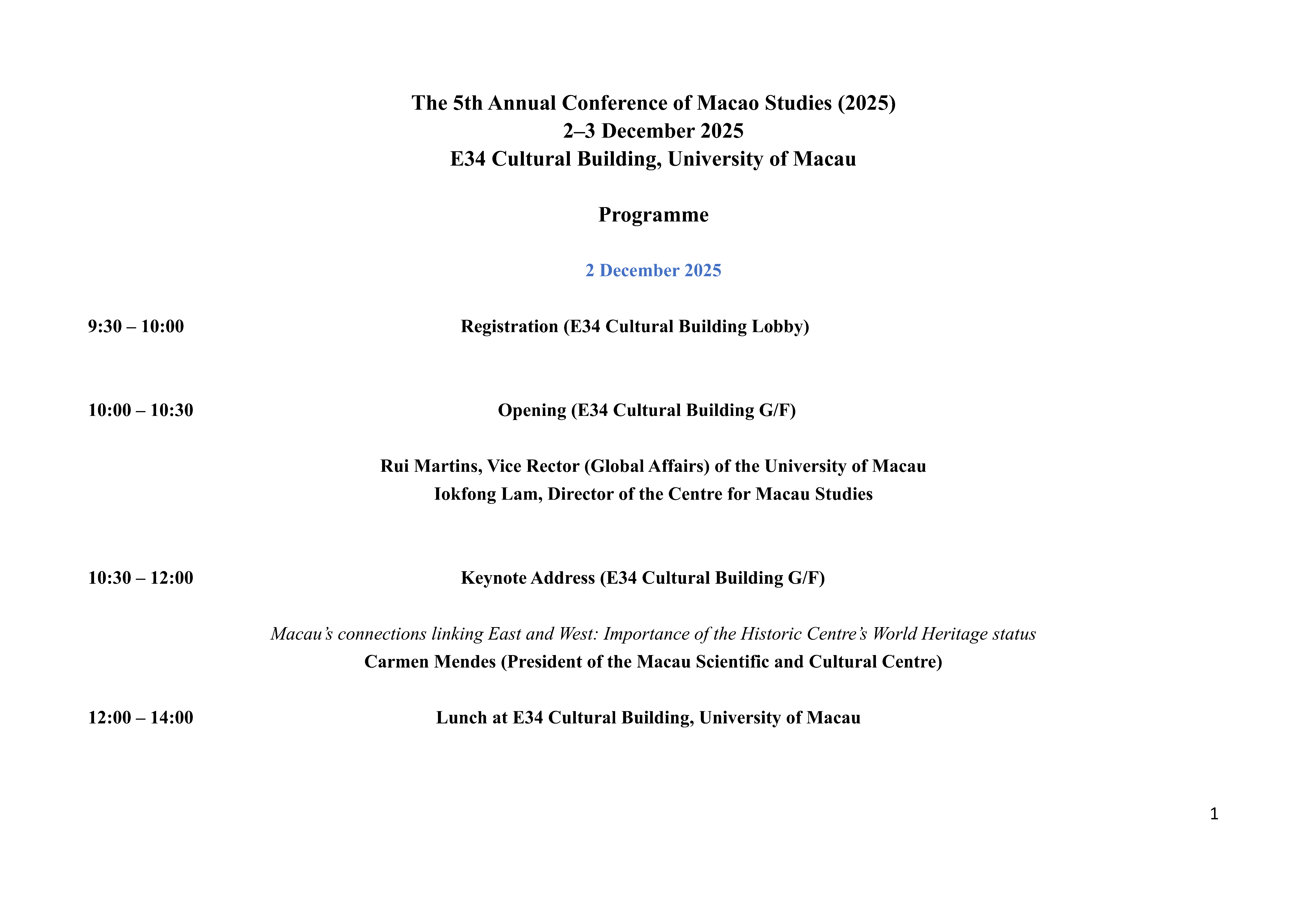 Venue: Cultural Building (E34), University of Macau