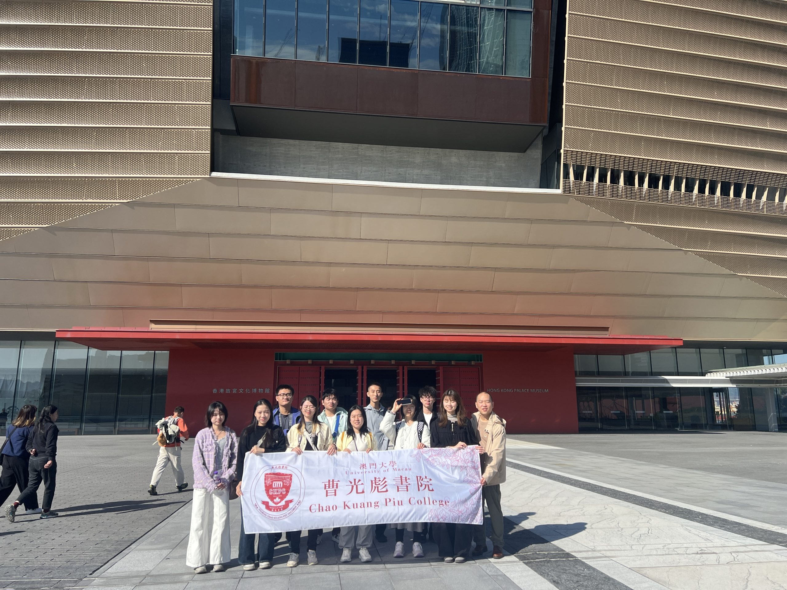 Chao Kuang Piu College of the University of Macau organised an arts and culture study trip to Hong Kong on 22 November (Saturday), bringing 11 follows and students to explore the theme “Dialogue Between History and the Contemporary”. The group visited three major cultural institutions — the Hong Kong Palace Museum, M+ Museum, and Tai Kwun Contemporary — experiencing exhibitions that spanned ancient Egyptian civilisation, immersive works by women artists, and cutting-edge digital cloud art. The trip offered participants an inspiring and impactful cultural experience.