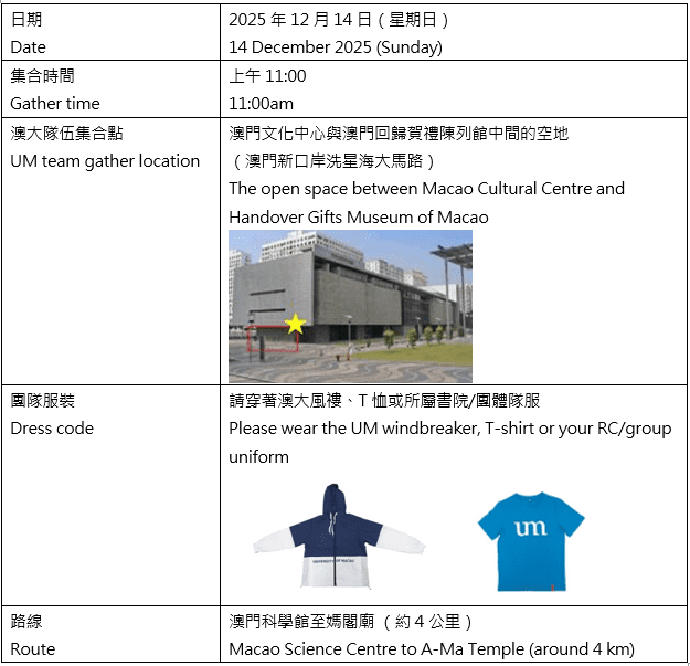 如有垂詢,請聯絡傳訊部公共關係處何小姐(電話:8822 8360; 電郵:oliviaukho@um.edu.mo)。