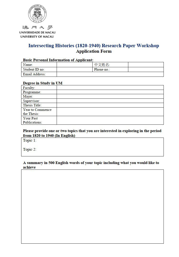 Topics that can lead to an MA or PhD thesis will be given priority, with an emphasis on “Intersecting Histories of the Greater Bay Area (1820 to 1940)”.