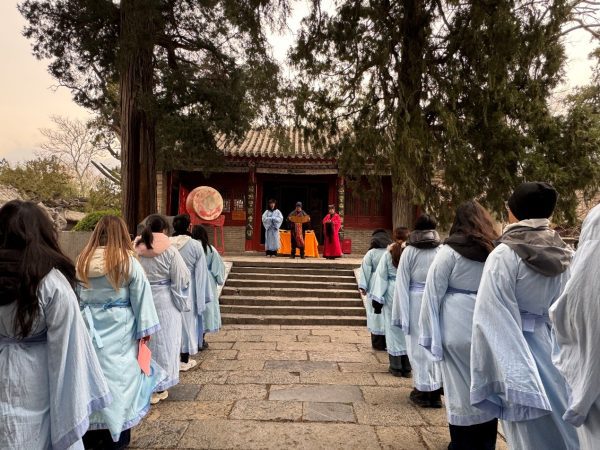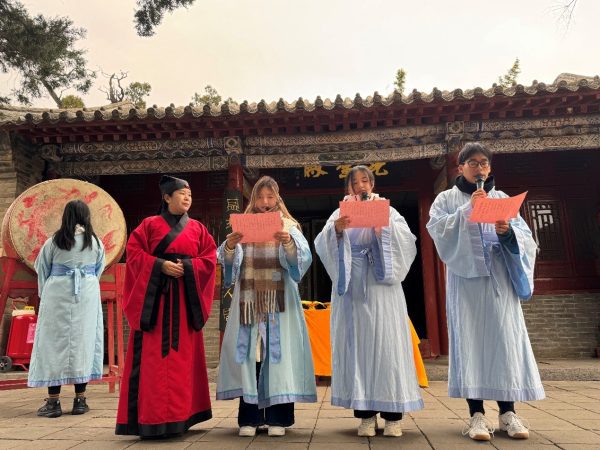 The group systematically examined representative relics from various periods of the Central Plains civilization, following a historical sequence. The journey began at the Songyang Academy, one of the Four Great Academies of the Song Dynasty, where students participated in a traditional “Worship of Confucius” ceremony. Its intact lecture halls and sacrificial system vividly demonstrate the institutional form of ancient Chinese Confucian education.