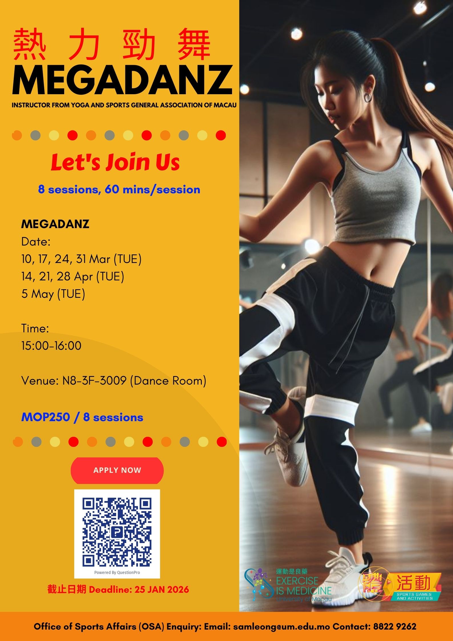 Sports: Sports Interest Courses for 2nd Semester of 2025/2026 – MegaDanz (Application deadline: 25 JAN 2026)
