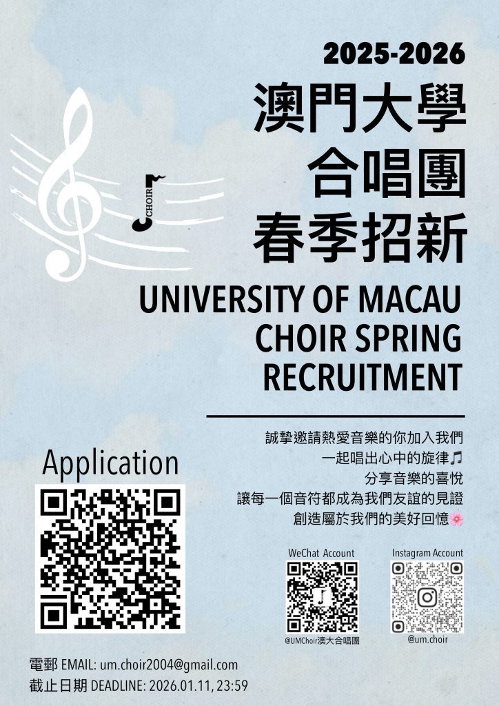 澳門大學合唱團現正招收新團員! (截止日期:2026年1月11日)