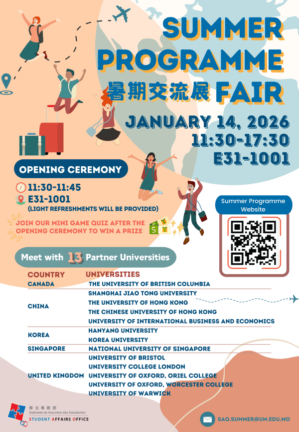 Visit our website for more details: https://summer.sao.um.edu.mo/