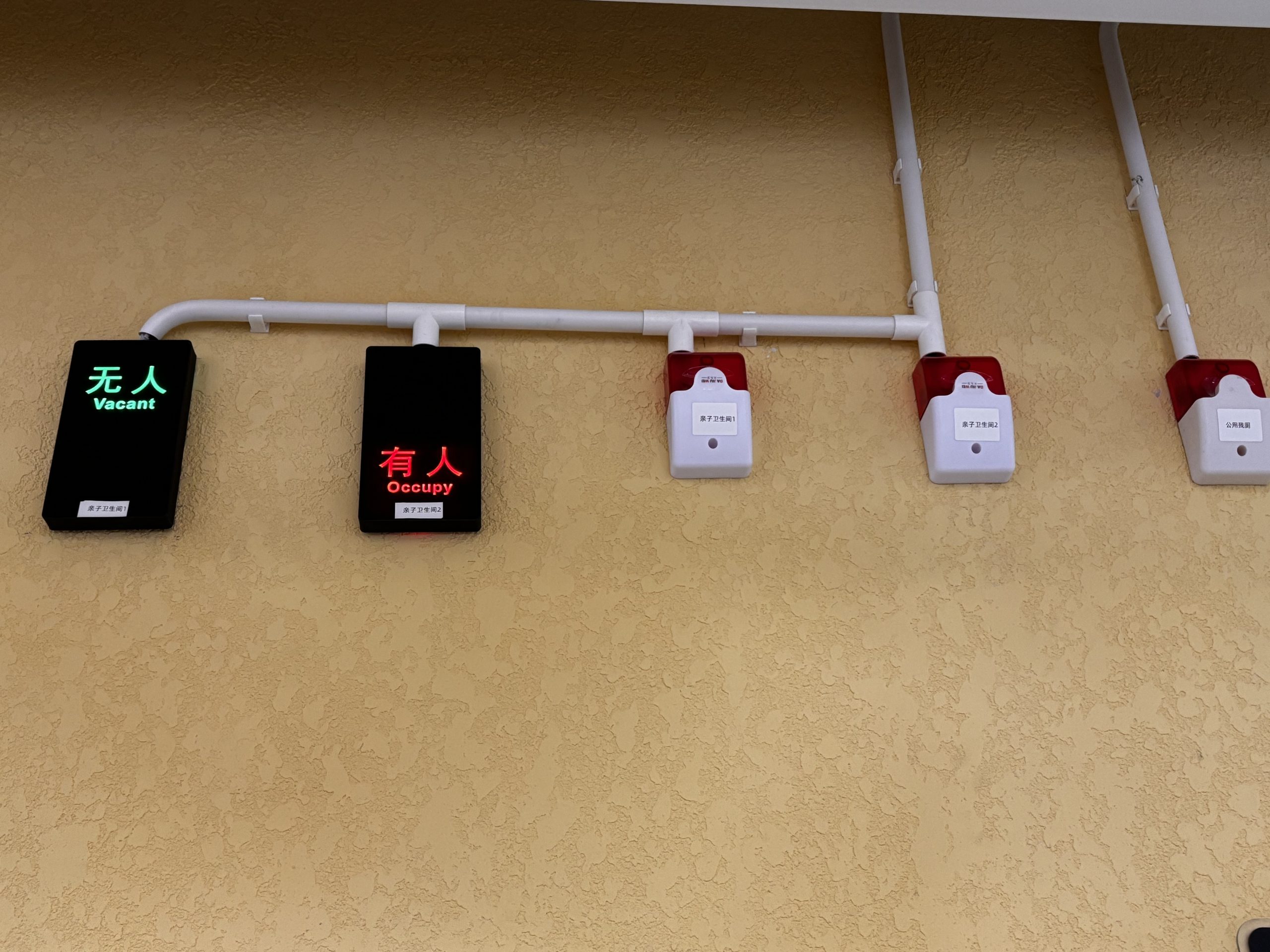 家庭更衣室使用狀態電子感應器顯示屏及緊急按鈕警報系統