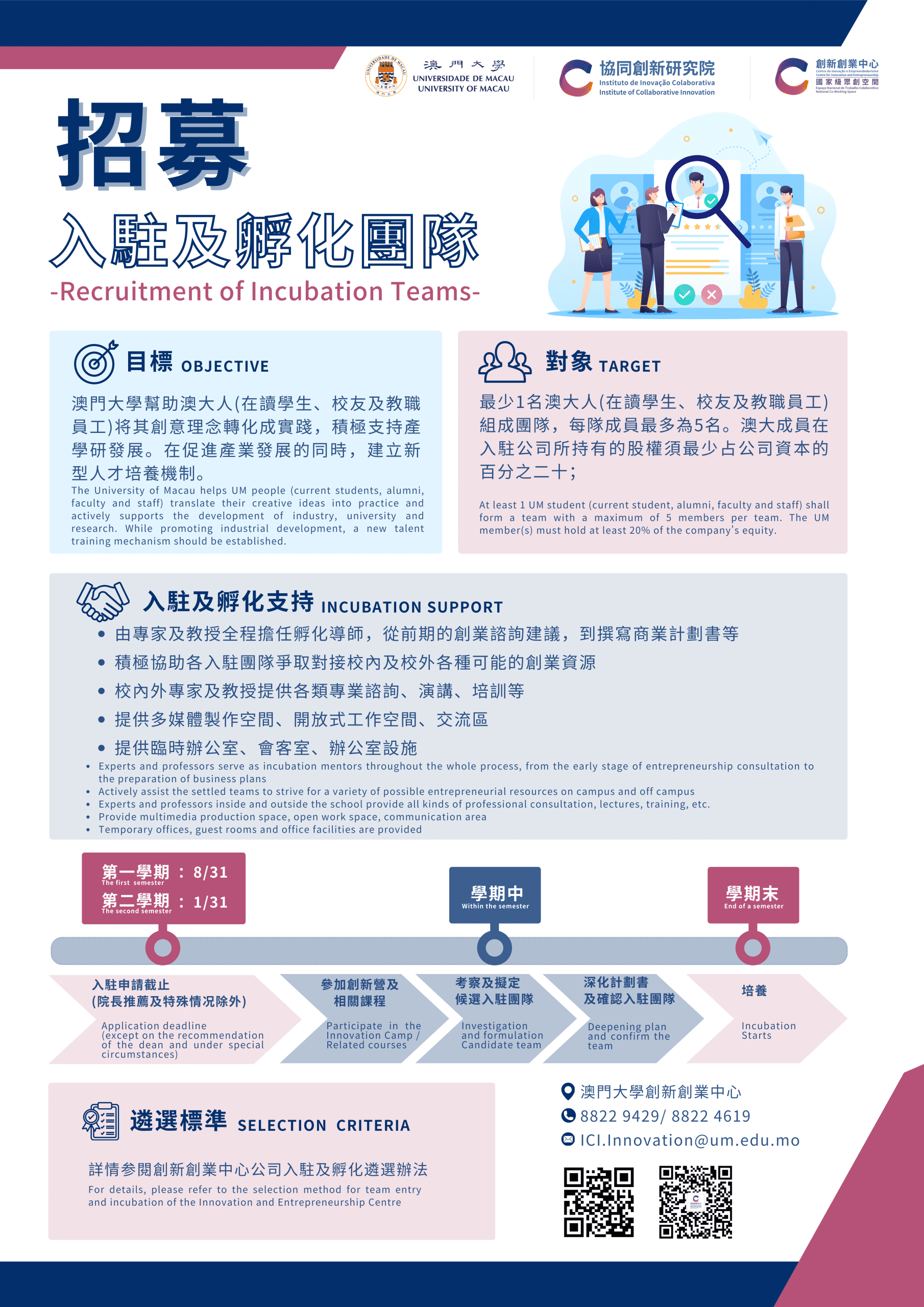1、申請材料:申請表 + 商業計劃書(可通過官網https://go.um.edu.mo/qfjrwgvt下載)
