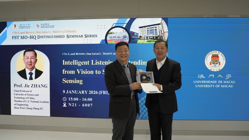 The Faculty of Science and Technology of the University of Macau hosted a compelling installment of its FST MO-HQ Distinguished Seminar Series on 9 January 2026 featuring Prof. Jie Zhang, Chair Professor at the University of Science and Technology of China and esteemed Member of the U.S. National Academy of Engineering. His talk, “Intelligent Listening: Extending AI from Vision to Sound and Vibration Sensing,” offered a visionary exploration into one of AI’s most underappreciated frontiers — auditory and vibrational perception.