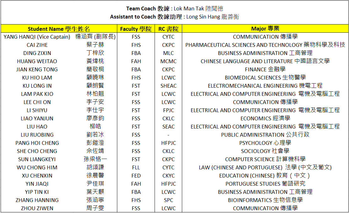 UM Fencing Team has sent 22 members to participate in 6 individual events, including Men’s Individual Epee (男子重劍), Women’s Individual Epee (女子重劍), Men’s Individual Foil (男子花劍), Women’s Individual Foil (女子花劍), Men’s Individual Sabre (男子佩劍) and Women’s Individual Sabre (女子佩劍) . The overall results are shown as below: