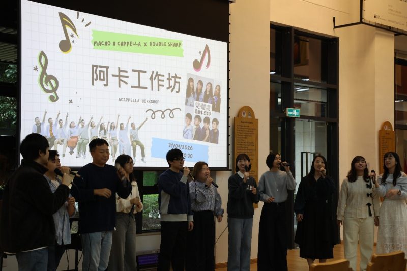 澳門大學滿珍紀念書院於2026年1月31日成功舉辦「樂滿滿珍:人聲同頻」無伴奏合唱工作坊。本次活動由滿珍紀念書院、澳門無伴奏合唱協會及Double Sharp聯合籌辦,於書院禮堂為本地歌唱愛好者帶來了一場深度沉浸的音樂體驗。工作坊旨在讓不同水平的參與者探索無伴奏合唱的核心技藝,包括人聲打擊、和聲融合、動態控制與舞台表達。