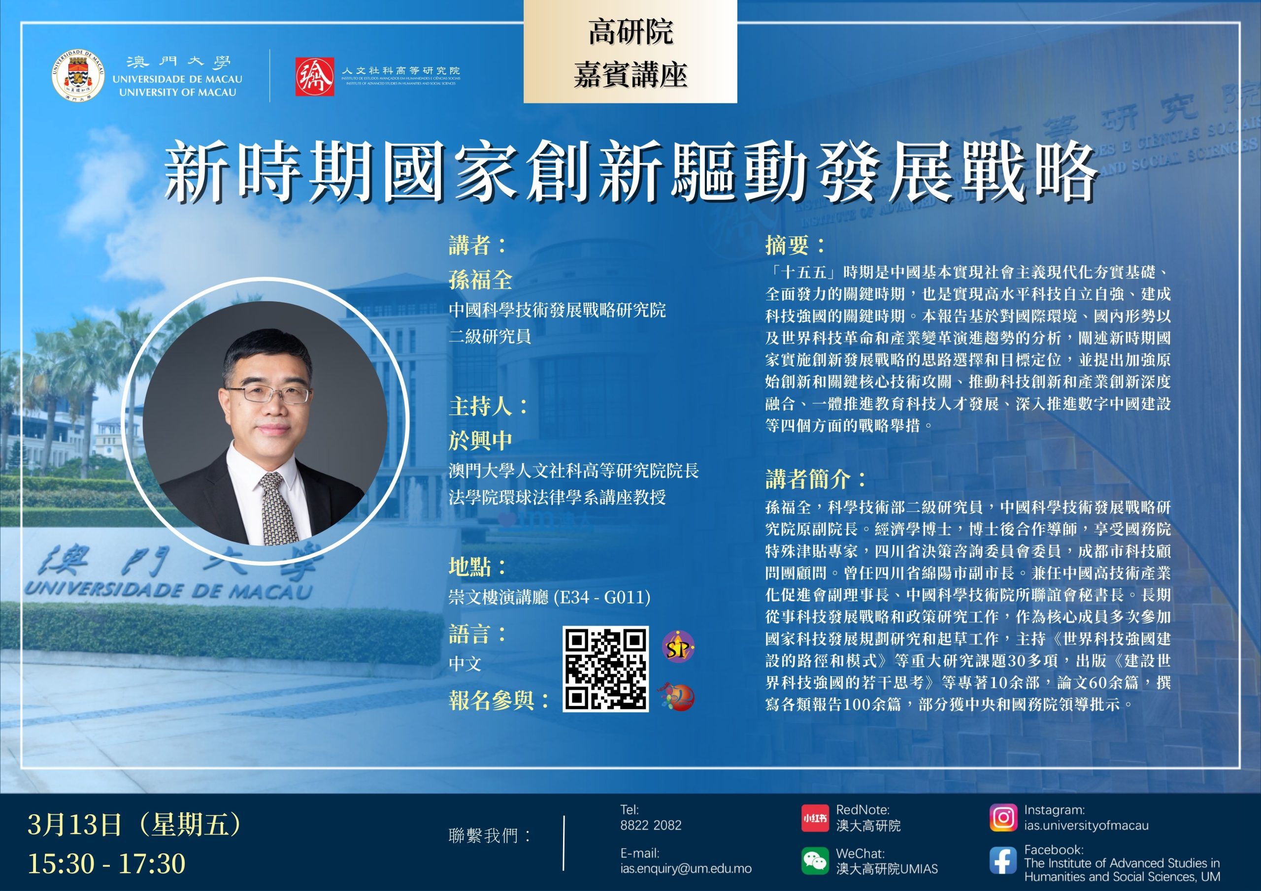【IAS】Guest Lecture: National Innovation-Driven Development Strategy in the New Era – Researcher Sun Fuquan (13 March 2026, Friday; 15:30 – 17:30)