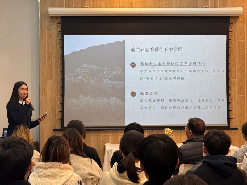 以少林寺、龍門石窟的佛教藝術為重點,該組同學深入探討了佛教自傳入中原後,如何與中國本土文化相互融合、共同發展的歷程,分析了佛教建築、造像藝術所蘊含的哲學思想與歷史價值。