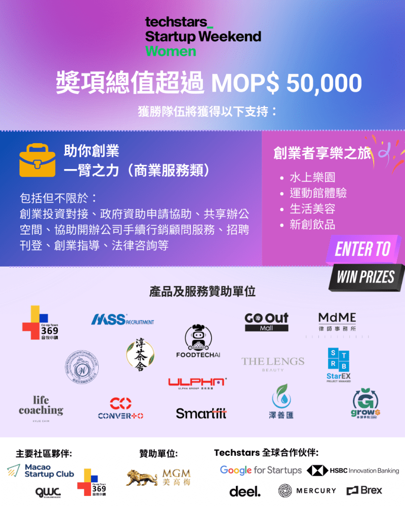 - 有機會獲百萬創業基金 + 總值超$50,000獎品