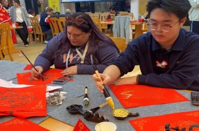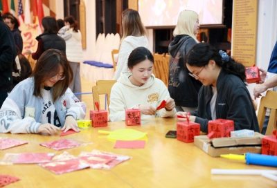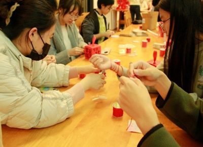 The event featured immersive cultural experiences as its core, offering a variety of popular interactive booths. In the “Writing for Good Fortune” booth, the fragrance of ink filled the air as students wrote their personal New Year wishes. At the “Red Packet Handicrafts” booth, creativity flourished as participants designed their own unique red packets. The “Red String Weaving” and “Chinese Paper-Cutting” booths also drew long queues, with students experiencing the beauty of intangible cultural heritage as they wove peace and cut auspicious motifs with nimble hands. The highly anticipated “Horse Gallop Fun” pushed the festive atmosphere to its peak. Laughter and cheers echoed throughout the venue as participants enjoyed the fun competition. Beyond the joy, the event showcased strong teamwork collaboration among the students.