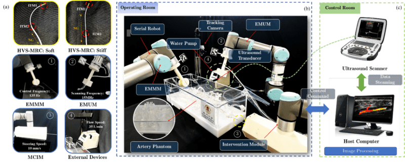 多臂協作超聲引導磁控變剛度導管機器人用於無輻射血管介入治療