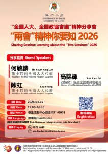 誠邀參與“全國人大、全國政協會議”精神分享會: “兩會”精神你要知 2026 (3月25日, 15:00, E31學生活動中心劇場)
