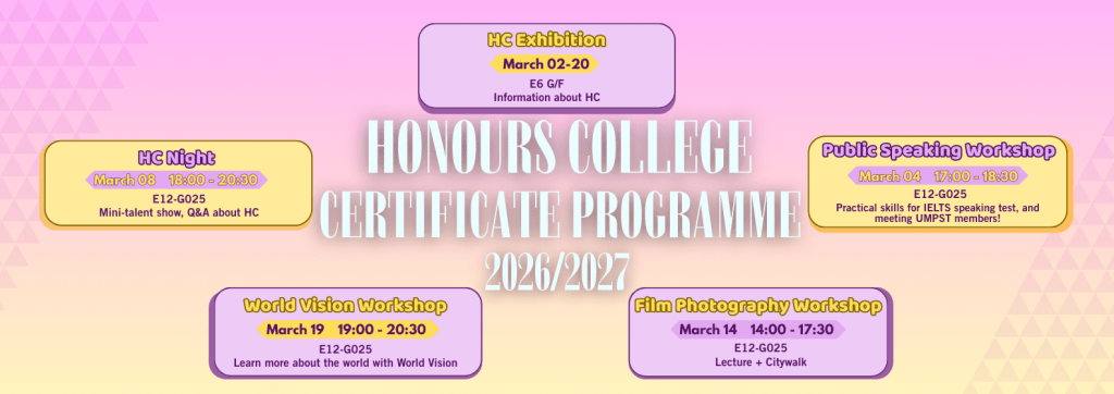 Greetings from the Honours College Student Association (HCSA)! As part of our Honours College Promotion Month, we are thrilled to invite you to our Film Photography Workshop & Macao Citywalk! This unique experience combines hands-on film photography skills with a creative exploration of Macao’s charming streets, all captured through the lens of a disposable Fujifilm camera. Whether you’re a photography enthusiast or a complete beginner, this workshop is designed to help you create timeless masterpieces while discovering the beauty of Macao.