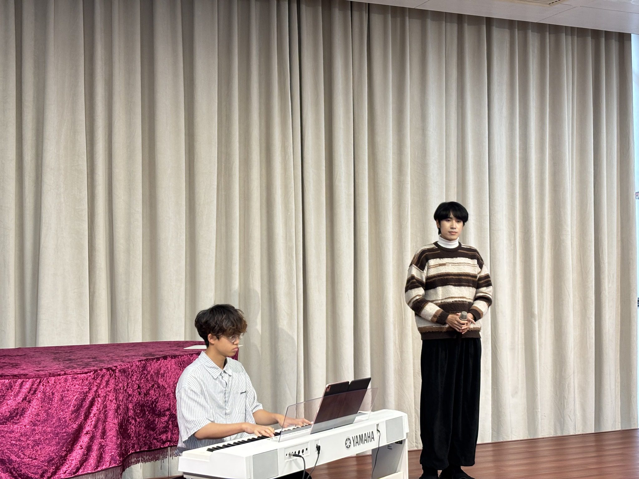 After then, students Ka Weng LEI, President and Chi Lok WONG, Vice-President of Student Association of FED introduced the organizational structure and affairs of FEDSA. The game session was hosted by two members of FEDSA Chan Seng CHAN and Sam U WONG, who energized the atmosphere and encouraged enthusiastic participation from both faculty members and students. The interactive activities created many joyful moments and offered a valuable opportunity for communication and connection. Besides, the performance segment was equally impressive. Students Pui Chio TSANG and Iat Chon LEONG from the Bachelor of Education Programme (Primary Education), collaborated on a song titled “Those Bygone Years”, bringing youthful energy and vibrancy to the event and receiving warm applause from the audience.