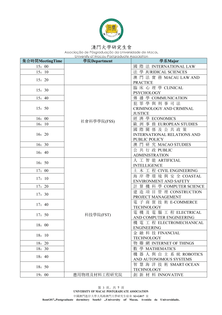 本通告由 澳門大學研究生會 畢業生委員會學會 製作,學生發展處代傳。