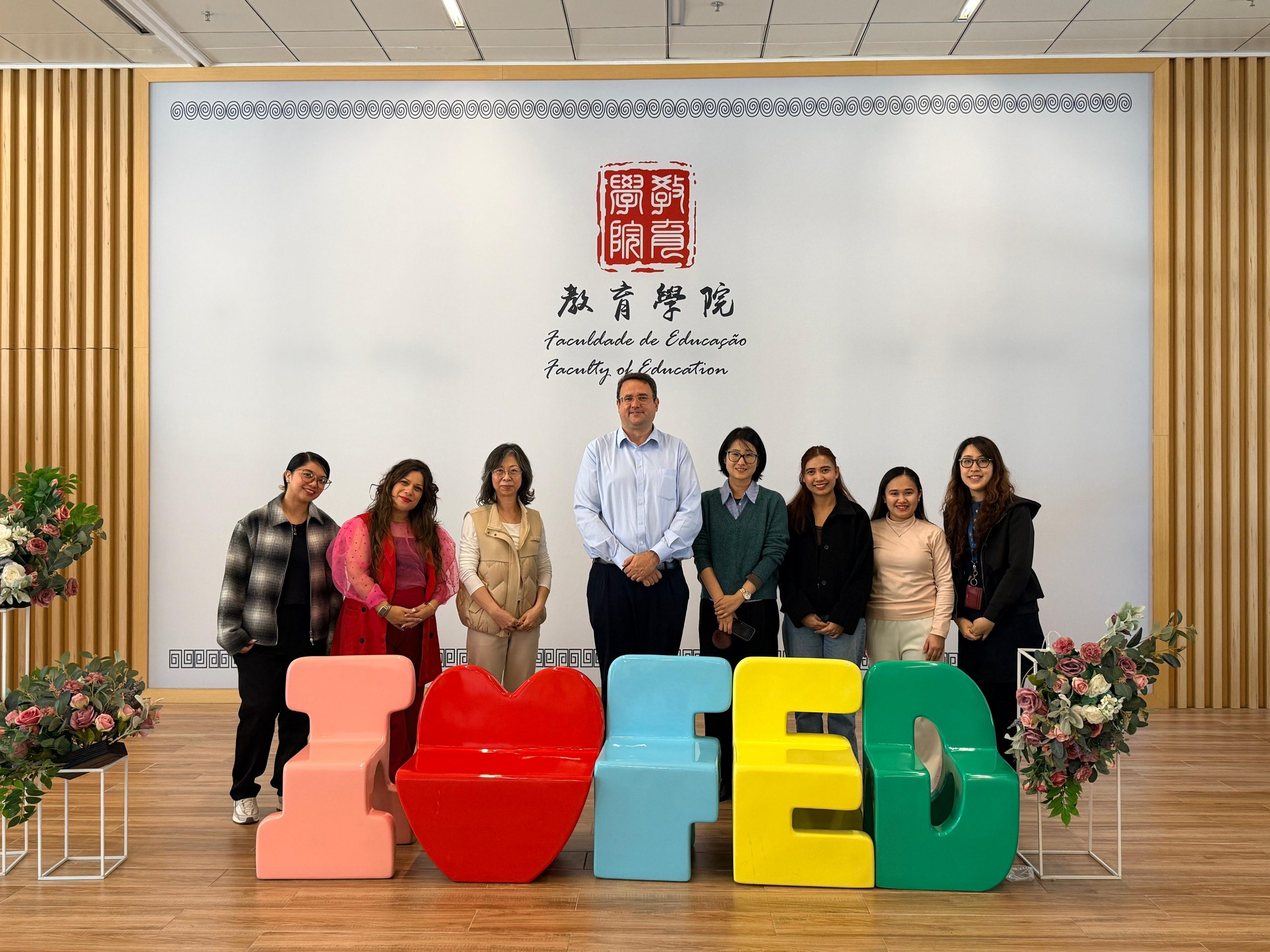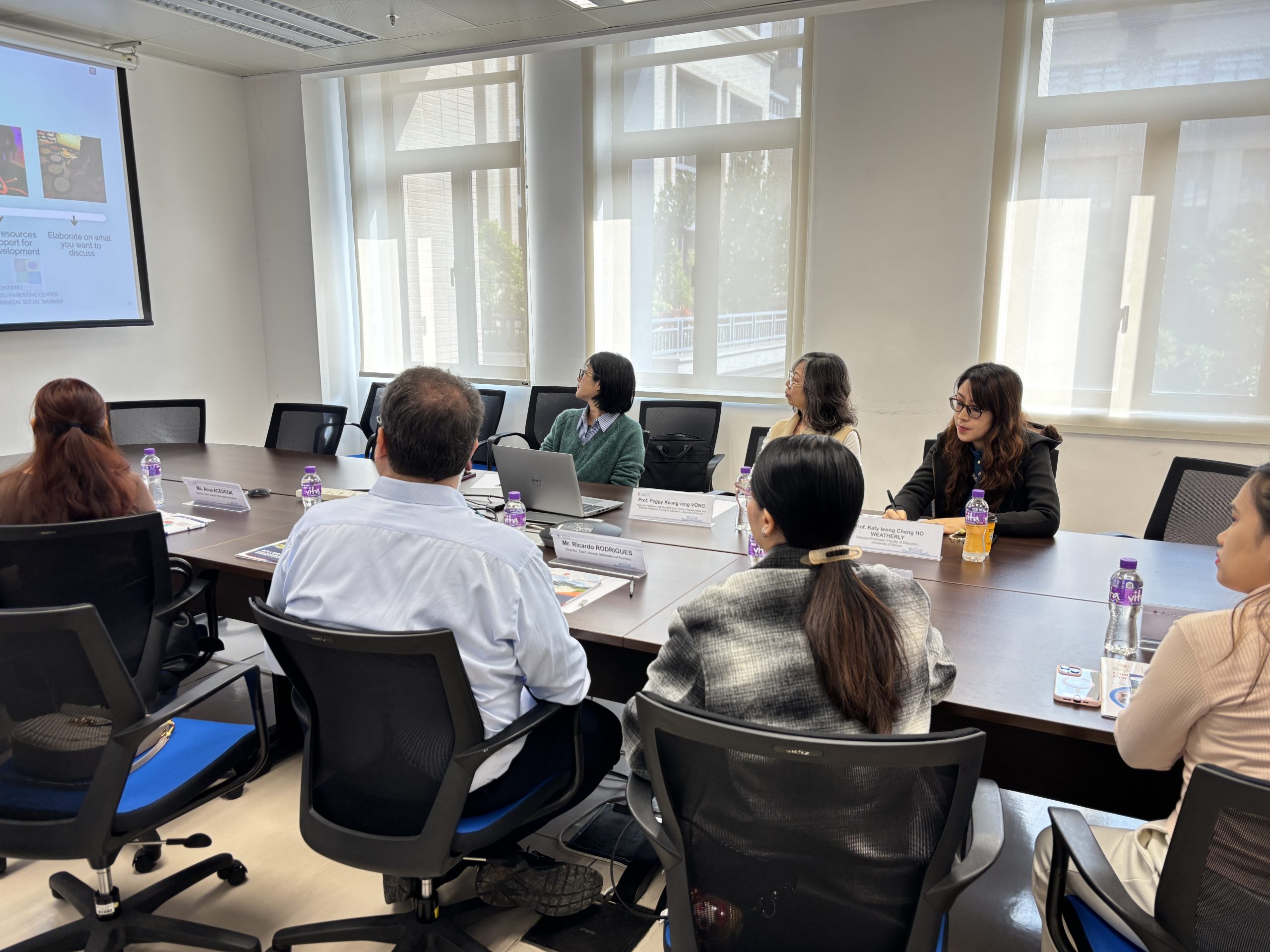 Prof. Keang-Ieng VONG, Assistant Dean (School Engagements and External Relations), Prof. Jin SUN, Programme Coordinator of Bachelor of Education Programme (Pre-Primary), and Prof. Katy Ieong Cheng HO WEATHERLY received the delegation. The delegation from Saint Joseph International Nursery included: Mr. Ricardo RODRIGUES, Ms. Sandra MONTEIRO, and three teachers.