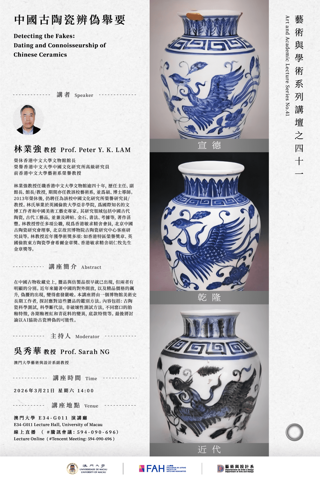 講座主題 Topic : 中國古陶瓷辨偽舉要 Detecting the Fakes: Dating and Connoisseurship of Chinese Ceramics